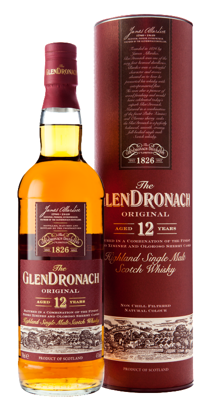 This superb richly sherried single malt is matured for at least 12 years in a combination of the finest Spanish Pedro Ximenez and Oloroso sherry casks. Non-chill filtered, of natural colour and bottled at 43%, the GlenDronach 12 year old Original is a sweet, creamy dram.